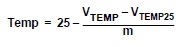 El ADC posee un sensor de temperatura cuya salida esta conectada al canal analógico AD26 y está definida por: