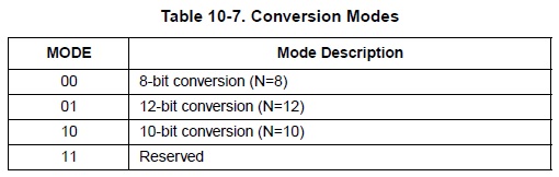 El módulo del ADC permite dos modos de conversión, estos son: el modo de conversión continua y el modo de conversión simple, los cuales pueden configurarse con el bit ADC0 del registro de estatus y control ADCSC1 (ver Registros de Control).
