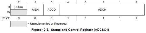 El bit COCO se borra cada vez que se escribe en ADCSC1 o cada vez que se lee el registro ADCRL.
