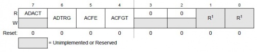 Si ADTRG = 0 se selecciona software trigger, la conversión se hará cada vez que se escriba en el registro ADCSC1 (ver Modos de Operación).