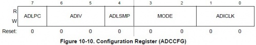 ADCCFG = 0x40;         // Se selecciona Long Sample time y se divide el Bus Clock entre 2