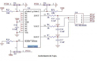 - Modo Inactivo: Al colocar acelerómetro de 3 ejes en modo de suspensión. El usuario puede controlar mediante PTC4 para activar o desactivar el acelerómetro.