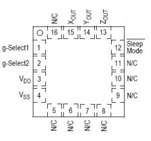 Este dispositivo cuenta con una gama variada para su sensibilidad respecto al movimiento que se le aplica, se puede utilizar 1,5g 2 y 4g según se le especifique mediante la configuracion de los jumpers, especificamente la línea de jumpers J14(G-Sel2) J15(G-Sel1) y J16(Sleep Mode) según convenga, para cada valor del rango se tiene otro valor de sensibilidad que es inversamente proporcional al primero.