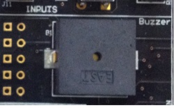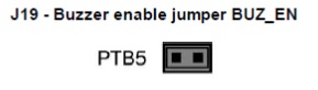 La Tarjeta de Desarrollo DEMOQE128 contiene un piezo buzzer, el mismo se encuentra conectado al pin PTB5 del microcontrolador por medio de un Jumper. Para poder utilizar este buzzer es necesario que el Jumper esté habilitado.