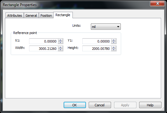 Ahora demos doble clic sobre el contorno de la tarjeta para abrir sus Propiedades. En esta ventana seleccionar la pestaña Rectángulo. Introducir los siguientes valores: Ancho: 2000, Altura: 1500. Dar clic en Aceptar. El contorno de la tarjeta cambiará de tamaño: