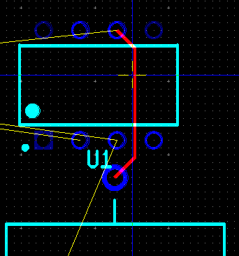 Como bien dije antes, queda a conveniencia de cada quien la manera en la que se coloquen los componentes y se haga el ruteo. Para este ejemplo preferí usar la capa inferior ya que hay componentes que, si se rutean las pistas en la capa superior, van a ser complicados soldarlos porque no queda espacio entre la tarjeta y el componente (como el caso de chips, capacitores electrolíticos, etc...). También se puede hacer el uso de vías para facilitar el ruteo, ya que el camino a veces se hace complicado si tenemos muchos componentes. Las vías nos sirven para pasar de una capa a otra y aprovechar el espacio de la tarjeta al máximo.