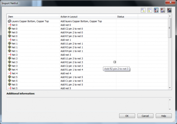 Posteriormente se abrirá de manera automática la ventana Importar Netlist. Esta ventana nos da toda la información acerca de todos los elementos (componentes, nodos) que se están exportando de Multisim a Ultiboard: