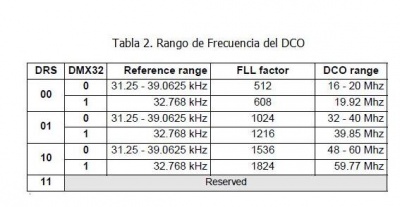 - 6.4 Máxima Frecuencia del DCO con un oscilador de 32.768Khz