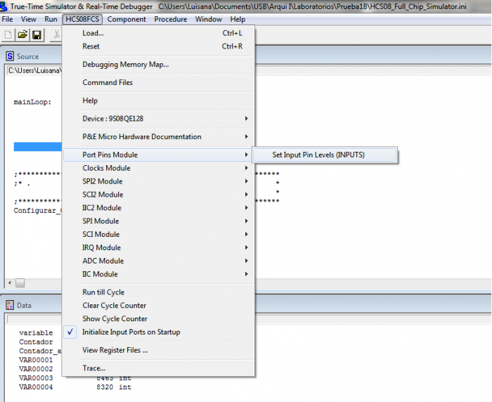 Aparecerá un recuadro llamado Simulated Port Inputs, en este todas las entradas aparecerán en alto, para simular la interrupción se coloca en bajo el pin deseado según el mapeo de pines del módulo del KBIx. En la tabla mostrada se observa el valor que se debe introducir para simular la interrupción correcta.
