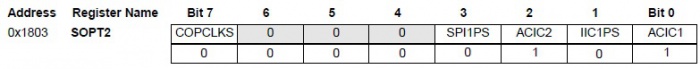 Donde el valor hexadecimal 0x05 representa los 8 bits del registro SOPT2 que, como se observa en el cuadro anterior, son 00000101.