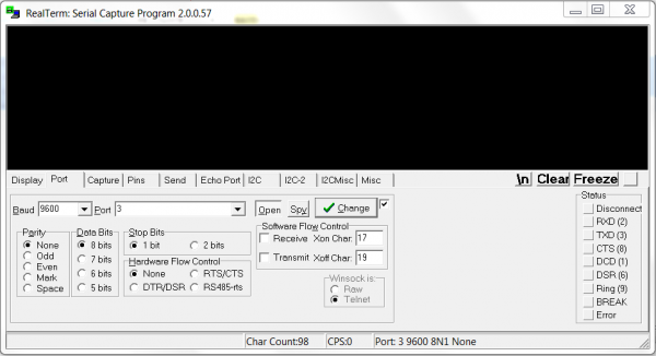 • Al tener instalado el programa se tiene que poner la opción Port en USB COM, el Baud=9600 y luego darle a la presionar “Open Serial Port”.