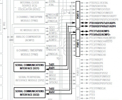 El módulo del SCI del MC9S08QE128, es una gran herramienta para la recepción / transmisión serial. El Microcontrolador MC9S08QE128, tiene dos puertos seriales, el SCI1 y el SCI2. En el desarrollo del tema se explicará solo el SCI1 ya que es el más usado, si requiere información sobre el SCI2 dirigirse al manual del MC9S08QE128.