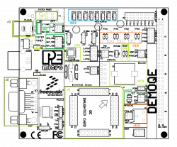 También permite la conexión de una "tarjeta hija".[1] Está provisto de un puerto BDM (Background Debug Mode) opcional para el uso de una interfaz BDM externa como el programador automatizado Cyclone PRO (de P&E) o USB Multilink.[2]La tarjeta utilizada en los cursos de la Universidad Simón Bolívar corresponde a la Revisión C. Por lo tanto es necesario descargar el manual apropiado ya que presenta diferencias con respecto a la Revisión A y a la Revisión B. Al final del presente artículo se encuentra el enlace a la página del fabricante de la tarjeta (PEMICRO) para descargar el manual. El sitio oficial del fabricante de la tarjeta de desarrollo Demoqe128 es: Pemicro Demoqe128