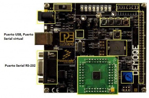 La tarjeta DEMOQE tiene 2 puertos por los cuales puede transmitir serial de 3 formas diferentes, con ayuda de los software Real Term Descarga del Real Term y el Terminal de Freescale.