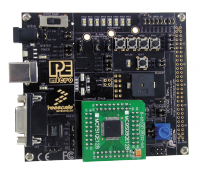 - 4 8x2 conectores machos asimétricamente posicionados para tarjetas hijas intercambiables. (Ver)Archivo:Placement Front.pngDEMOQE128 (Anverso)